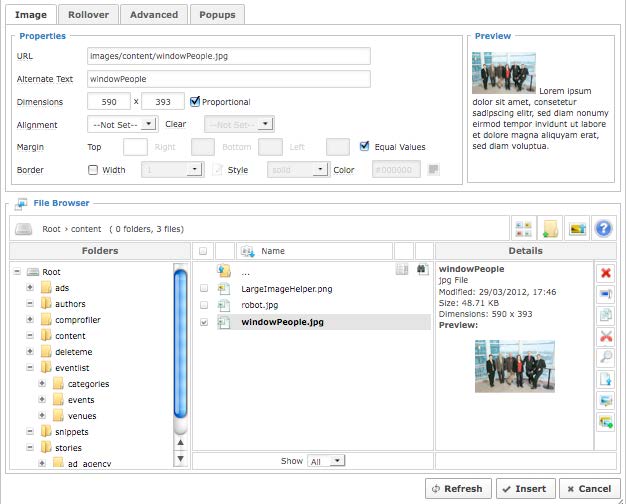 • Select the image in the File Browser portion of the window and hit “Insert”.